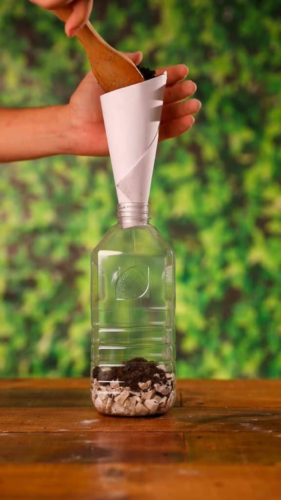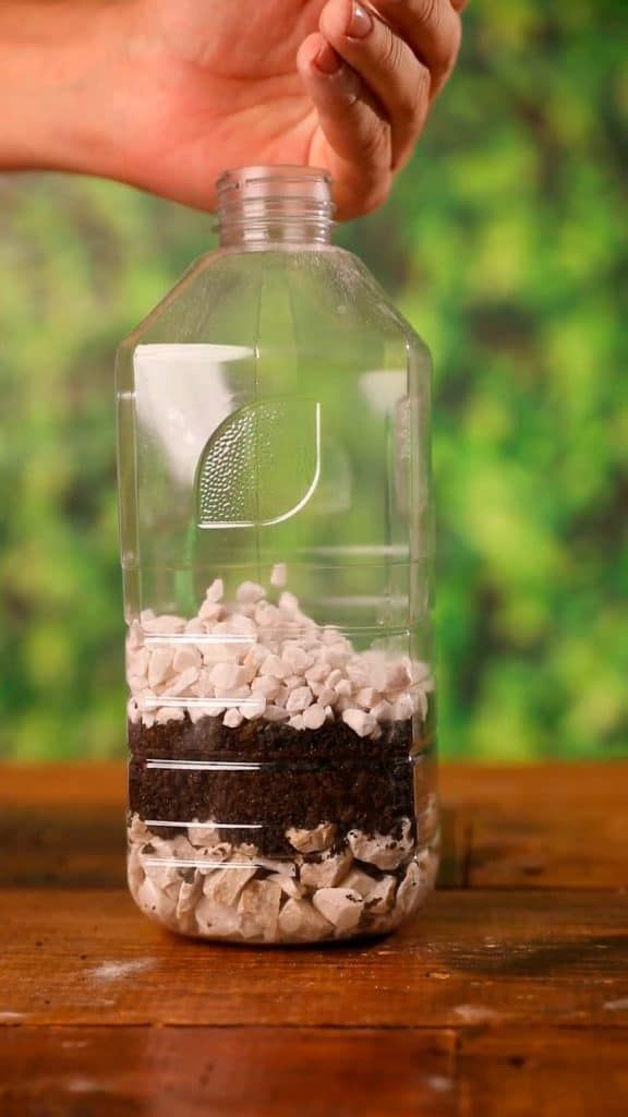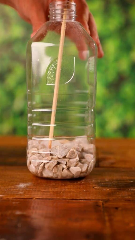 - Adicione pedrinhas na parte inferior da garrafa. Ajuste com uma pinça.