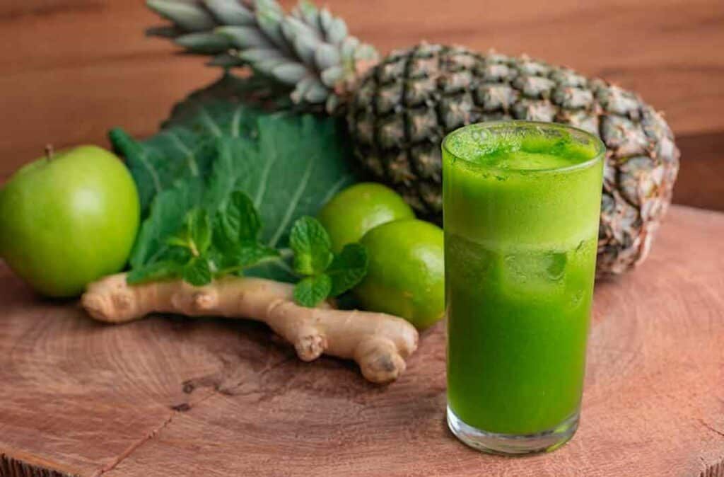 O suco verde é uma escolha clássica e eficaz para a desintoxicação. Podendo misturar ingredientes como folhas verdes escuras, pepino, maçã e limão, ele é uma explosão de nutrientes, fornecendo uma ampla gama de vitaminas e antioxidantes, além de contribuir para a restauração do equilíbrio do corpo.
