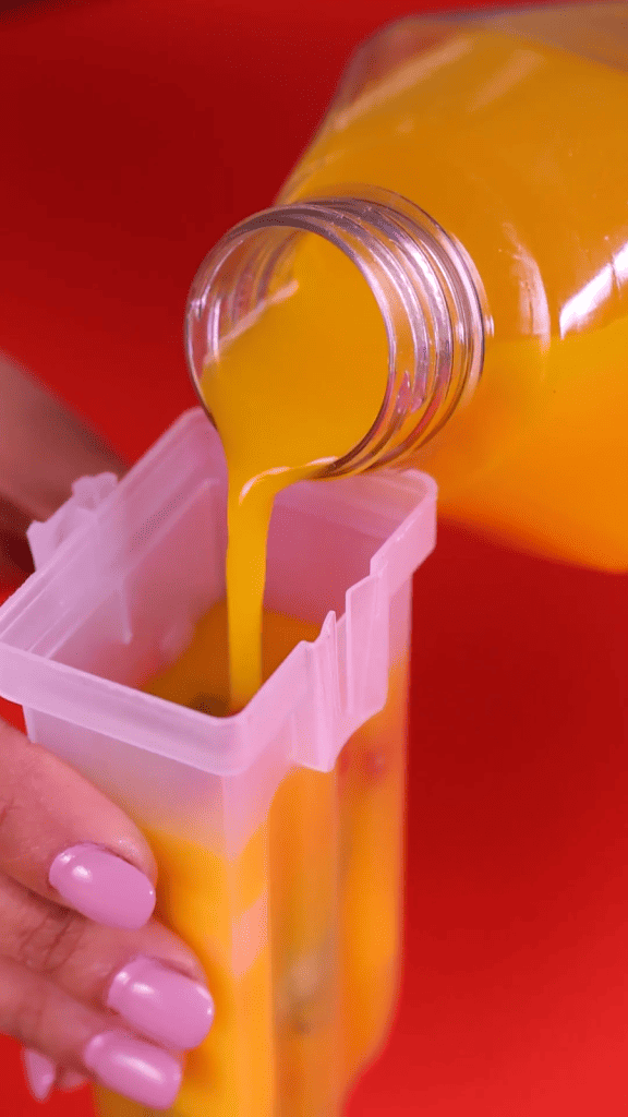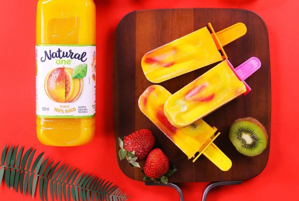 → Complete as formas com o Suco de Manga Natural One, que também leva maracujá, laranja, limão e maçã. Benefícios e sabor potencializados! Encaixe o palito de picolé e leve ao congelador por 6 horas.